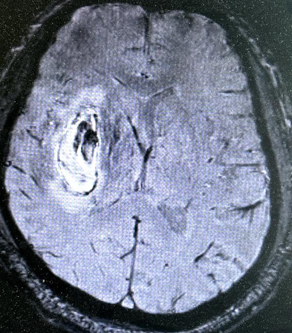 头颅磁敏感检查提示:患者右侧外囊脑出血、右侧尾状荷头部微出血
