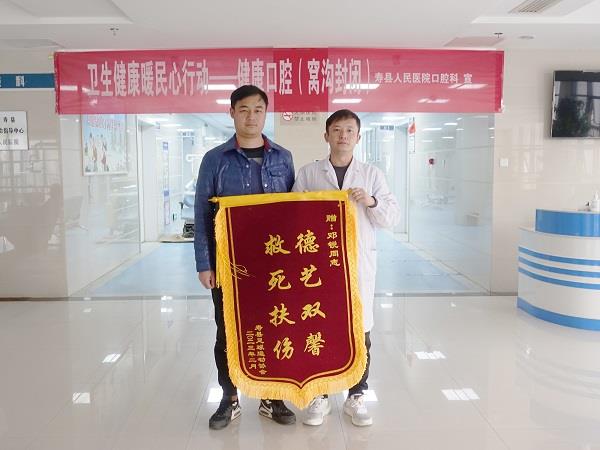 2月27日下午,寿县足球运动协会将四面锦旗分别送到神经外科主任邵勇、口腔科副主任邓锐、麻醉科田国海、检验科许峰四位医师手中,感谢他们在足球场上解危救急。