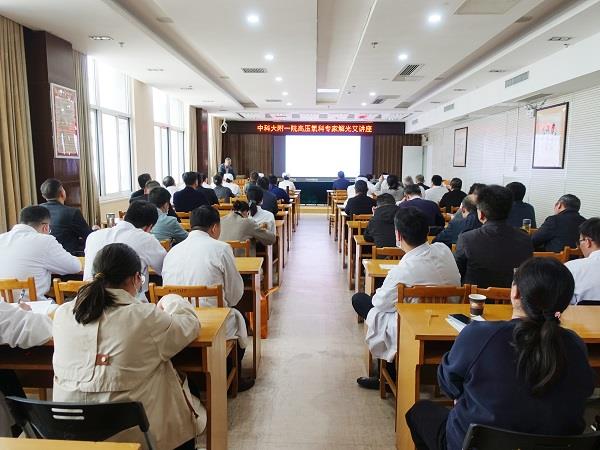 下午,解光艾副主任医师为寿县人民医院及医疗集团成员单位医务人员作《充分发挥高压氧医学临床作用》专题讲座。寿县人民医院院长陈冬来到现场聆听讲座。